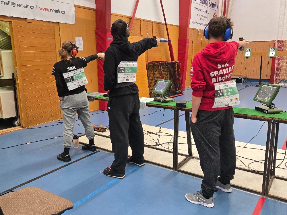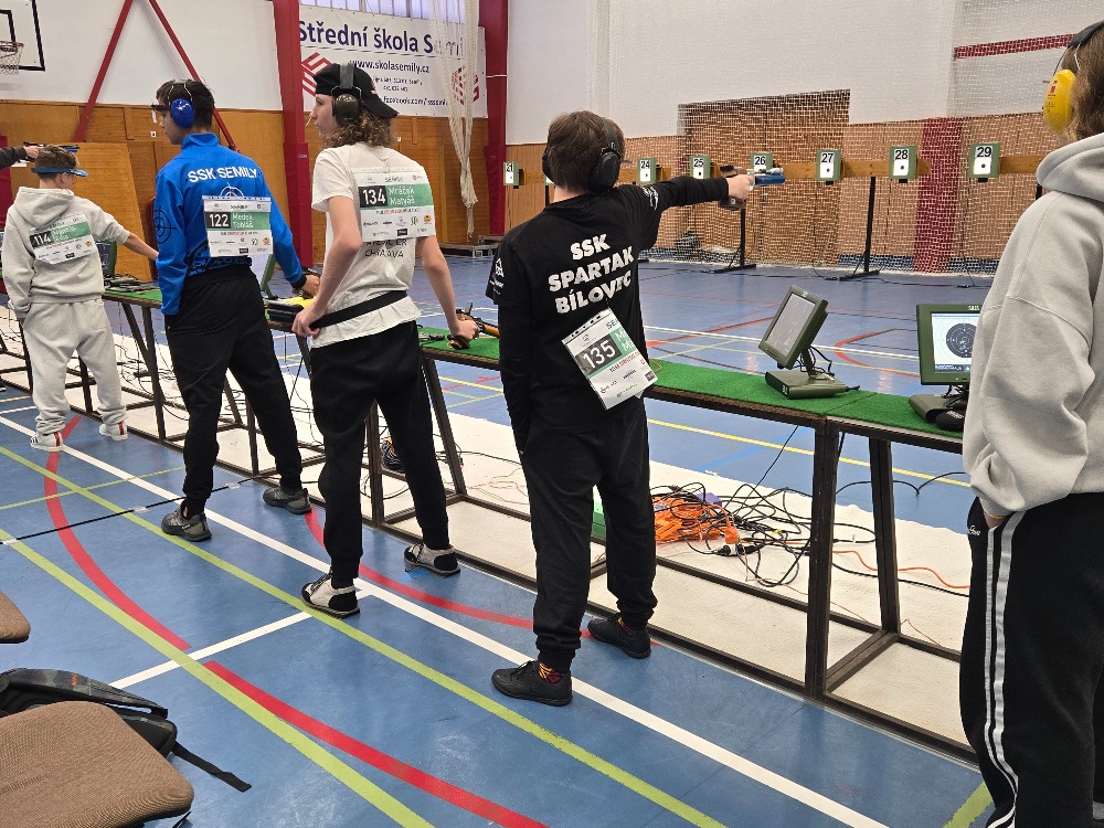 Ve dnech 31.10. – 2.11. 2025 proběhly v Semilech mezinárodní závody ze vzduchových zbraní. Těchto závodů se zúčastnilo i sedm našich střelců z Bílovce. Velké naděje jsme vkládali do Karly Joslové, která z hlavního závodu VzPi 40 dorostenky postoupila z šestého místa do finále, kde o medaile bojuje osm nejlepších střelců. Bohužel ve finále se Káji již tolik nedařilo a skončila nakonec na osmém místě, tedy bez medaile. Dalším našim želízkem v ohni byl Matouš Mrva. Ten nezklamal a svým výkonem 358 bodů v kategorii dorostenců VzPi 40, vyrovnal svůj osobní rekord a jako jeden z nejmladších skončil v první polovině startovního pole. Radost nám udělal i Kuba Jaroš, který už (ač ještě dorostenec) startoval v juniorské kategorii VzPi 60 a vystřílel si rovněž, výkonem 545 bodů, osobní rekord. Kuba se také umístil v první polovině startovního pole mezi juniory. Ostatním našim čtyřem střelcům se již tolik nedařilo, ale byl to zatím první závod v letošní vzduchovkové sezóně, tak máme velkou motivaci ke zlepšování. Velký závod na domácí půdě v Bílovci nás čeká koncem listopadu a na ten se budeme snažit maximálně připravit.